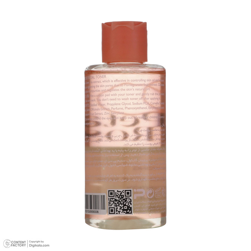 تونر صورت مناسب پوست چرب حاوی عصاره چای سبز می باشد که در کنترل چربی و سبوم پوست موثر است . همچنین به دلیل عصاره میوه انار به بسته شدن منافذ باز پوست کمک می کند . سطح پوست را از آلودگی ها پاکسازی کرده و PH طبیعی پوست را تنظیم میکند