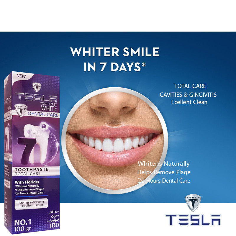 خمیر دندان 7 کاره تسلا از دهان و دندان شما تا 12 ساعت کاملا مراقبت میکند.این ویژگی در هر بار استفاده از این خمیر دندان پایدار است و دهان و دندان های شما در برابر میکروب ها محافظت می شوند.فرمولاسیون کاملا این محصول نیز از دیگر ویژگی های آن محسوب می شود که از جمله ترکیبات آن می توان به وجود سیلیکا تیکنز و کربوکسی متیل سلولز اشاره کرد.اثرات هر یک از این مواد در مراقبت و بهبود سلامت دهان و دندان کاملا اثبات شده است. خمیر دندان تسلا دارای بالاترین میزان فلوراید به میزان 1130 است و همچنین داشتن اسانس نعنا نیز یکی دگیر از مزایایی این خمیردندان است که باعث احساس خنکی و طعم خوشایند نعنا در دهان شما مصرف کننده عزیز می شود.با استفاده از خمیر دندان گیاهی محافظت کننده تسلا مدل Total Care 7علاوه بر مراقبت از دهان و دندان های خود، از ایجاد بوی خوش دهان و تازه شدن نفستان لذت خواهید برد. بعلاوه این خمیر دندان از تجمع جرم و پوسیدگی دندان جلوگیری میشود و به استحکام لثه ها کمک میکند.