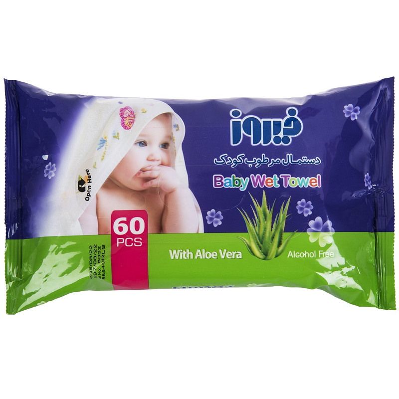پوست لطیف کودکان به مراقبت بیشتری نیاز دارد. جهت جلوگیری از شستوشوی مکرر دست و بدن کودک که باعث خشکی پوست او میشود، استفاده از دستمال مرطوب فیروز بسیار کمککننده است. دستمال مرطوب فیروز حاوی عصارهی آلوئهورا است که ضدالتهابی قوی است و حاوی مواد پاککنندهی ملایم، مرطوبکننده و محافظتکننده است. استفاده از دستمال مرطوب علاوهبر محافظت از پوست کودک، در مواقعی که امکان دسترسی به آب جهت شستوشو وجود ندارد، بسیار مفید است. در ترکیبات این محصول از روغن شیباتر استفاده شده است که موجب نرمی و لطافت پوست میشود. چنانچه پوست کودک به دلیل استفاده از پوشک یا ادرارسوختگی قرمز و ملتهب شده باشد، به دلیل وجود عصارهی کالاندولا التیام یافته و بهنرمی سابق بازمیگردد. این دستمال میتواند علاوهبر بدن برای صورت و دستهای کودک نیز استفاده شود و به دلیل داشتن ویتامین E از پوست در برابر اثرات مخرب رادیکالهای آزاد محافظت میکند. شرکت فیروز محصولات خود را به صورت دورهای و در کلینیکهای تخصصی آزمایش کرده و حساسیتزانبودن آنها به تایید رسیده است. تعداد دستمال مرطوبهای این محصول 60 عدد در بستهبندی پاکتی و به ابعاد 18×16 سانتیمتر است.