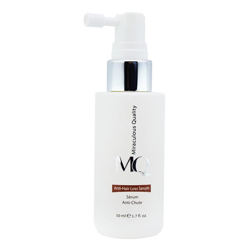 محصولات MQ ساخته شده از مواد با کیفیت است. این محصولات در یکی از معتبرترین لابراتوارهای فرانسه و زیر نظر اساتید فن در صنعت مراقبت از پوست و مو فرموله شده است. این کمپانی سرم ضد ریزش مو (ANTI HAIR LOSS SERUM) روانه بازار کرده است. این سرم دارای عملکرد چندگانه در راستای توقف ریزش مو و محرک رویش مجدد آنهاست. این محصول با مهار آنزیم ۵ آلفا ردوکتاز منجر به کاهش ریزش مو آندروژنیک خواهد شد. همچنین با تقویت گردش خون پوست سر باعث اکسیژن رسانی به فولیکول های مو شده و با ترمیم و تقویت تارهای مو برای انواع مو قابل استفاده است.علاوهبر اینکه به ریشههای ضعیف انرژی رسانی میکند باعث افزایش ضخامت و استحکام ساقه مو میشود. جهت استفاده پس از شستوشوی موها با شامپوی ضد ریزش و حجمدهنده MQ موها را خشک کرده و سپس پوست سر را به این سرم آغشته کرده و ماساژ دهید.2 الی 4 بار در هفته این عمل را تکرار نمایید. همچنین هر 2 تا 3 ماه یک دوره از این سرم استفاده نمایید.