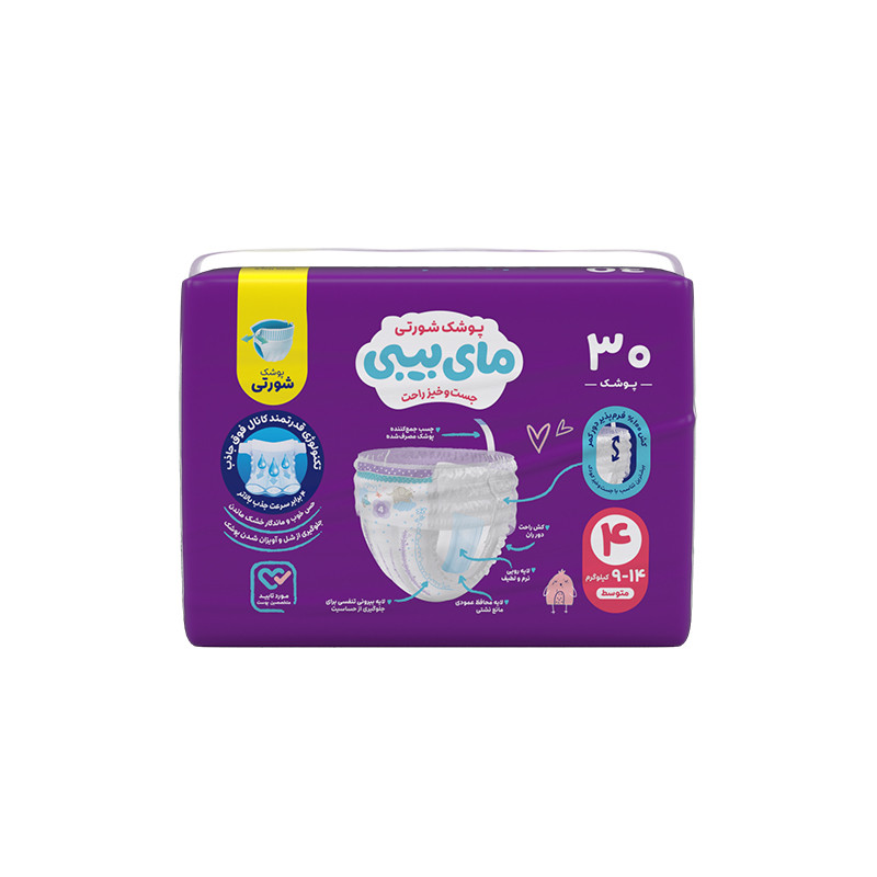 پوشک شورتی مای بیبی مدل کانال دار سایز 4 بسته 30 عددی پوشک-شورتی-مای-بیبی-مدل-کانال-دار-سایز-4-بسته-30-عددی-