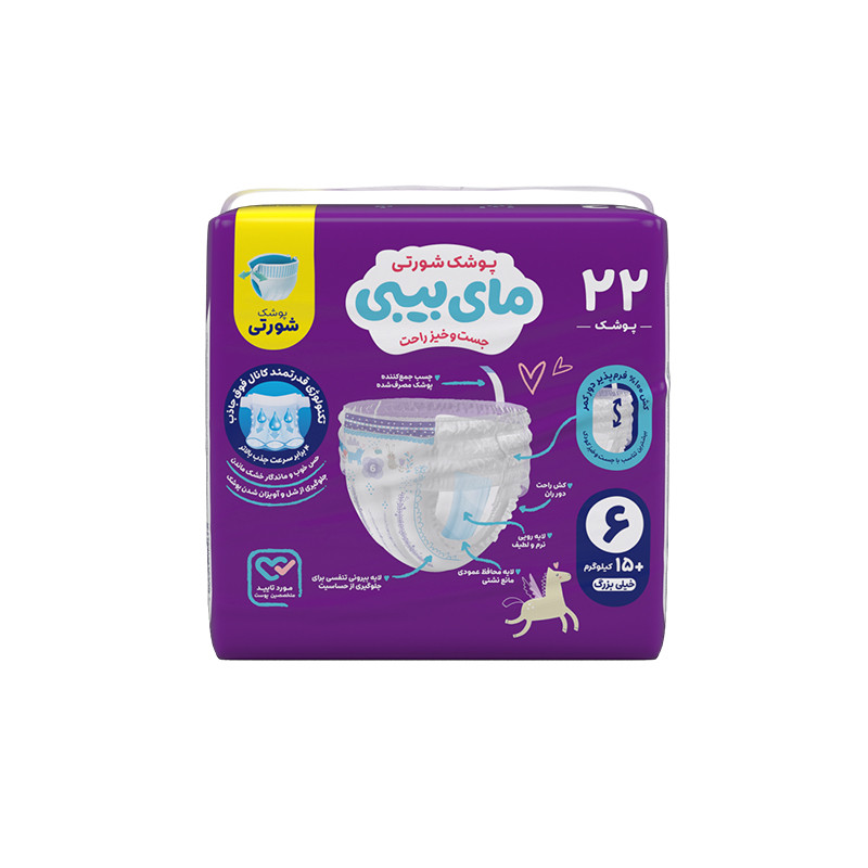پوشک شورتی مای بیبی مدل کانال دار سایز 6 بسته 22 عددی پوشک-شورتی-مای-بیبی-مدل-کانال-دار-سایز-6-بسته-22-عددی
