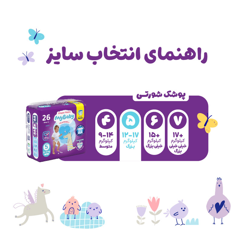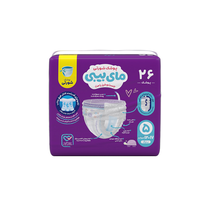 پوشک شورتی مای بیبی مدل کانال دار سایز 5 بسته 26 عددی پوشک-شورتی-مای-بیبی-مدل-کانال-دار--سایز--5-بسته-26-عددی-