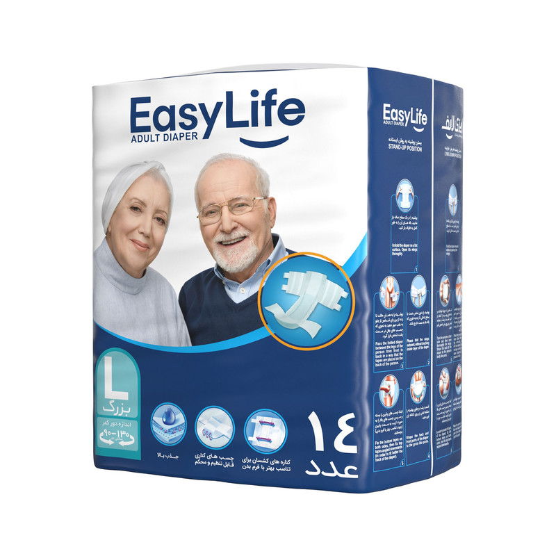 پوشینه چسبی بزرگسال ایزی لایف سایز بزرگ بسته 14 عددی پوشینه-چسبی-بزرگسال-ایزی-لایف-سایز-بزرگ-بسته-14-عددی