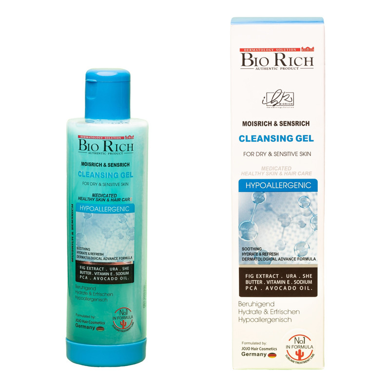 ژل شستشوي پوستهاي خشك و حساس بايوريچ يك شوينده و آب رسان ملايم است كه آلودگيهاي روزانه رابرطرف ميكند.استفاده از اين محصول به تسكين پوستهاي ملتهب كمك كرده و باعث افزايش رطوبت در پوست صورت به خصوص پوستهاي حساس ميشود كه احساس خنكي و آرامش ميكند.اين محصول حاوي مواد تسكين دهنده و ضدالتهاب مانند عصاره آلوئه ورا ، عصاره چاي سبز و عصاره انجير ميباشد كه طراوت بخش و بازسازي كننده پوست شما ميباشد. ژل شستشوي صورت بايوريچ حاوي روغن آووكادو و سديم pca است كه يك مرطوب كننده بسیار قوي براي حفظ آبرساني پوست ميباشد كه ويتامين E و شي باتر و اوره موجود در آن به نرمي و لطافت پوست شما كمك بسيار خوبي ميكند