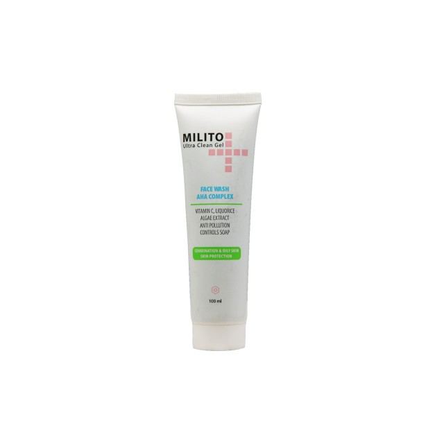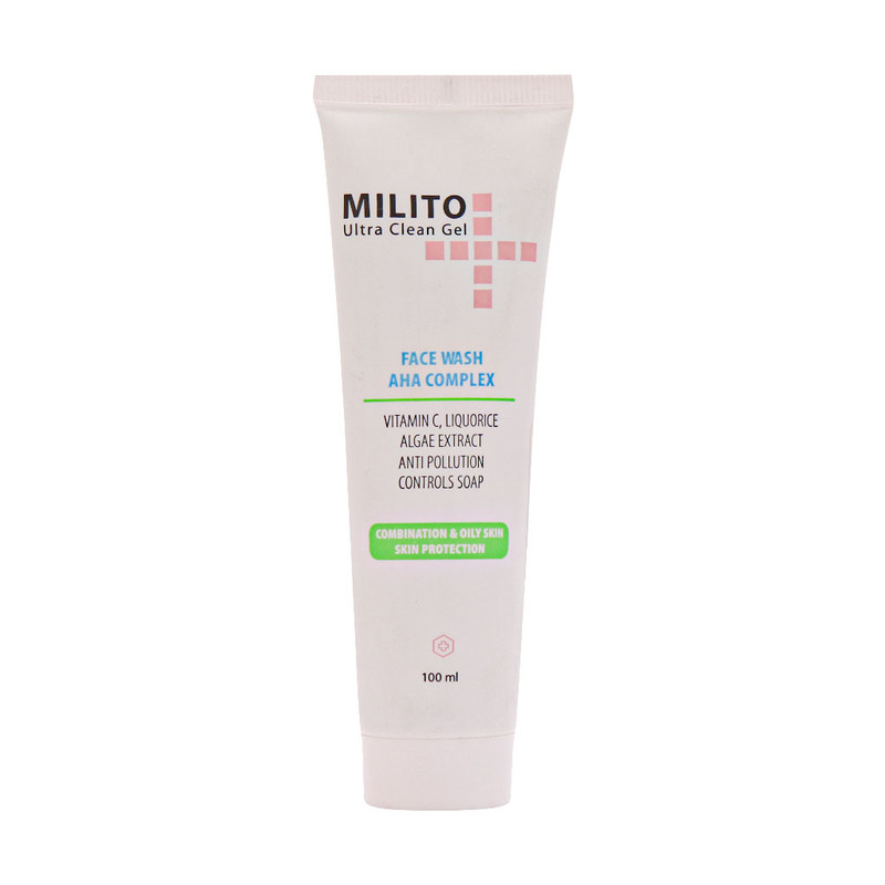 ژل شستشوی صورت میلیتو به طور موثر چربی ها و آرایش و کثیفی را از پوست پاک میکند . این محصول با داشتن AHA (اسید گلیکولیک ) و عصاره جلبک در شفاف سازی پوست بسیار موثر است .